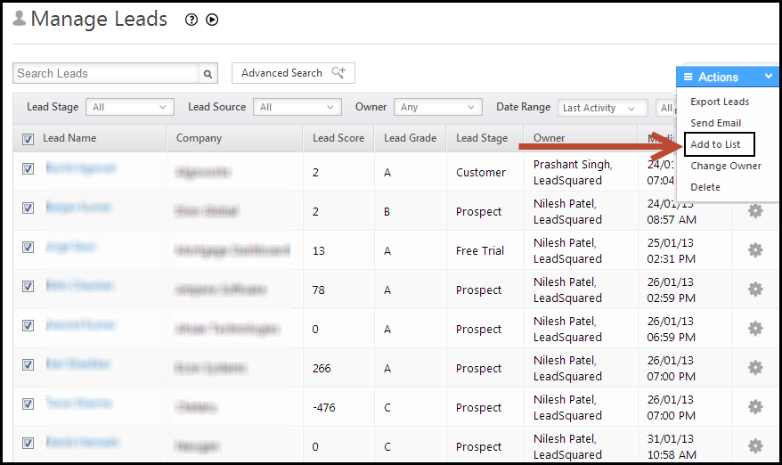 Add to list - LeadSquared Help and Support